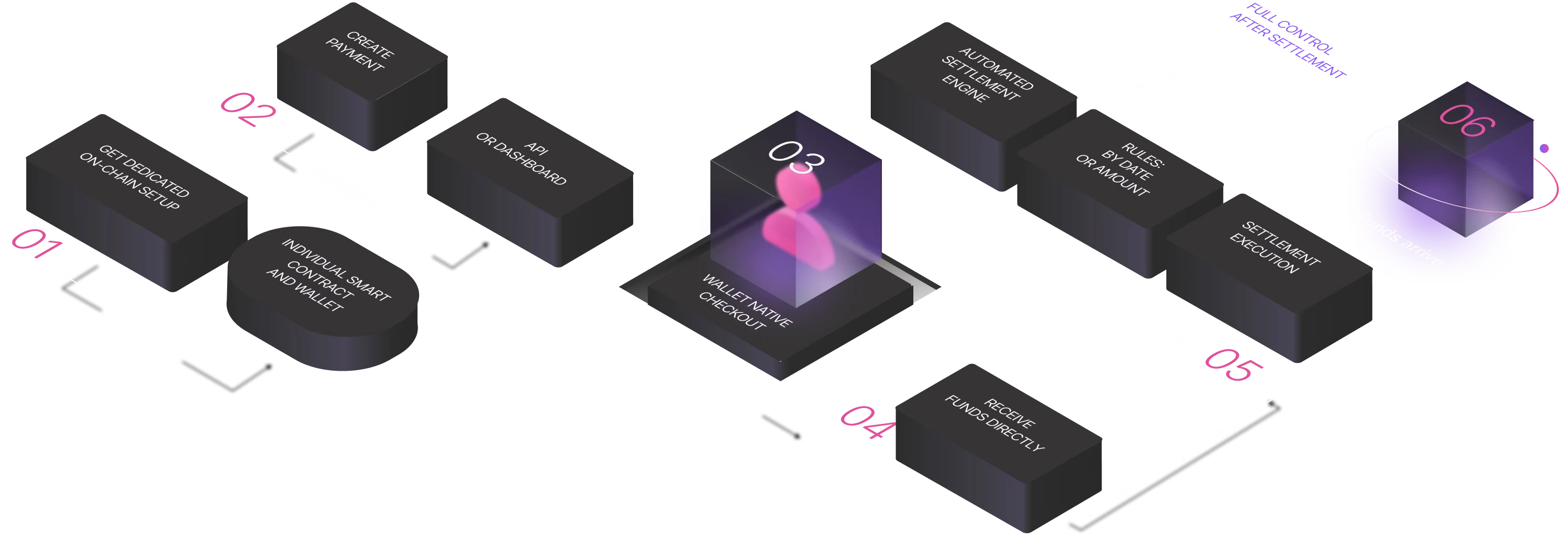 Payments go directly to your on-chain contract. We never hold funds — you stay in control.